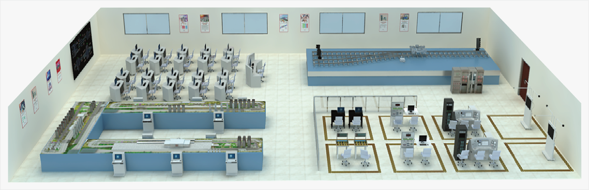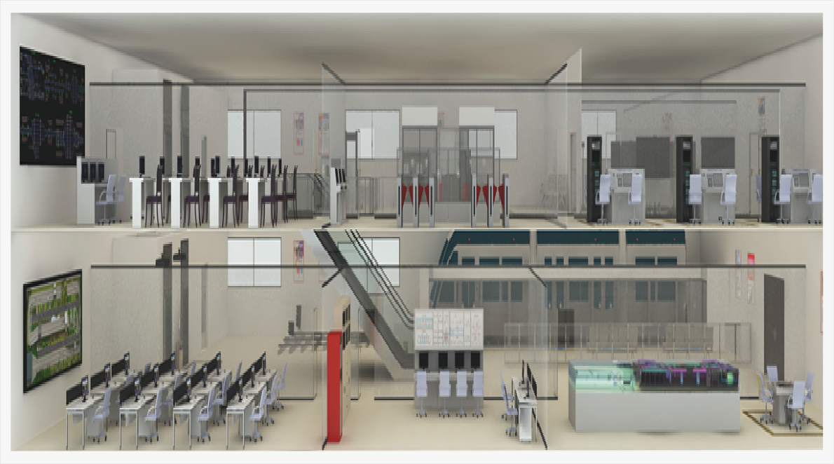 配備自動售檢票系統、調度中心實訓系統、安檢系統、屏蔽門實訓系統、環控系統、合演練平臺等實訓設備,按地鐵實際的系統建,實現運營管理當中的三級控制。可支持自動售檢票系統設備、安全門與車門操作、車站行車組織、行車調度指揮、車站運作綜合實訓等實訓。
