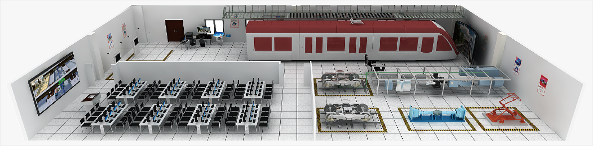 配備車輛設備檢修實訓系統(轉向架、自動車鉤、受電弓等)、模擬駕駛系統、模擬車廂實訓系統等實訓設備,以虛實結合的方式,建設專業實訓基地,為車輛檢修人員及機車司機提供專業實訓環境。可支持道交通列車駕駛、車輛調試及檢修、突發事件及故障處理、車輛裝配等實訓。
