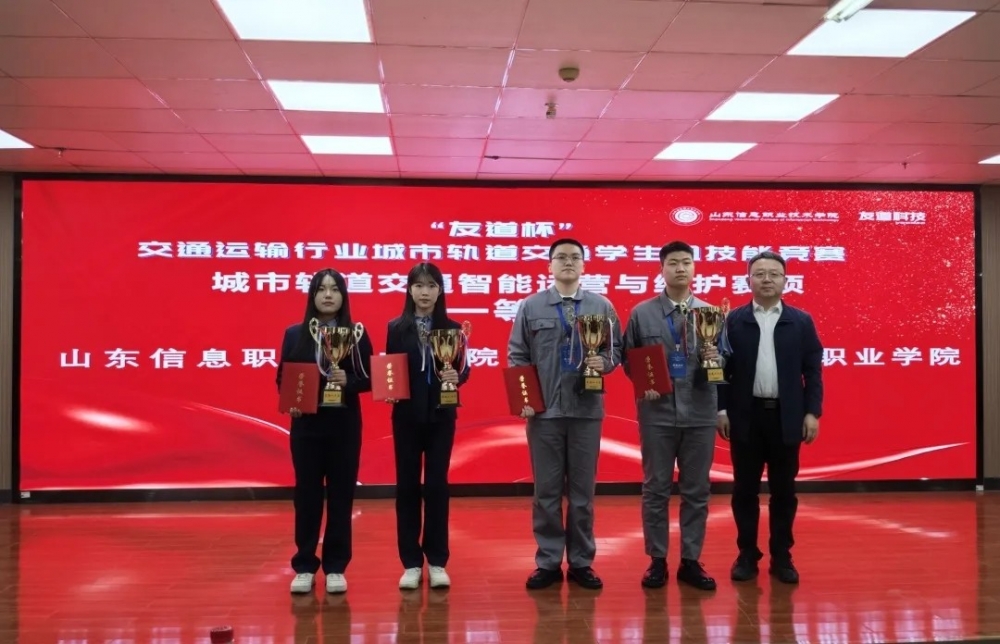 整個(gè)比賽過程嚴(yán)謹(jǐn)有序、特色鮮明、亮點(diǎn)紛呈,實(shí)現(xiàn)了預(yù)期目標(biāo),取得了圓滿成功。參賽選手能夠充分理解理論知識、熟練掌握實(shí)操環(huán)節(jié),充分展示了良好的精神風(fēng)貌、精湛的專業(yè)技能,賽出了水平、賽出了風(fēng)格、賽出了友誼。大賽經(jīng)過兩天的激烈角逐,共評選出城市軌道交通智能運(yùn)營與維護(hù)賽項(xiàng)一等獎(jiǎng)2個(gè),二等獎(jiǎng)5個(gè),三等獎(jiǎng)7個(gè);城市軌道機(jī)電技術(shù)賽項(xiàng)一等獎(jiǎng)2個(gè),二等獎(jiǎng)4個(gè),三等獎(jiǎng)6個(gè),山東信息職業(yè)技術(shù)學(xué)院和友道科技有限公司榮獲突出貢獻(xiàn)單位獎(jiǎng)。